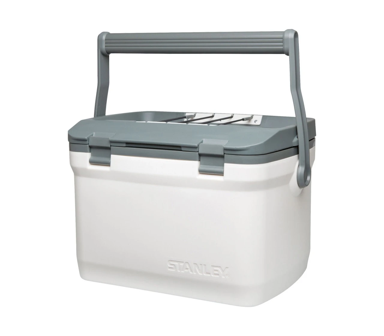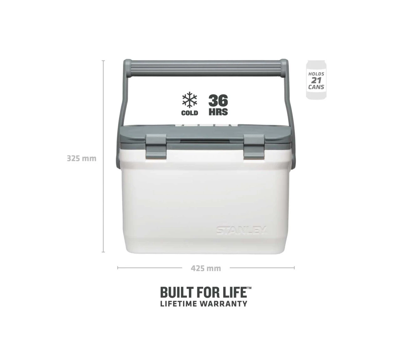 Dieser ADVENTURE COOLER von STANLEY überzeugt mit einer doppelwandigen Schaum-Isolation und hält den Inhalt bis zu 36 Stunden lang kalt. Die besonders stabilen Verschlüsse sorgen, zusammen mit einer Silikondichtung dafür, dass rein gar nichts ausläuft. Auf dem Deckel lässt sich leicht eine Stanley Vakuum Flasche befestigen. Dank des flachen Deckels kann der „COOLER“ auch bequem als Sitz benutzt werden. Alternativ kann auf dem Deckel eine Stanley Vakuum Flasche bis 0,7 Liter untergebracht werden.