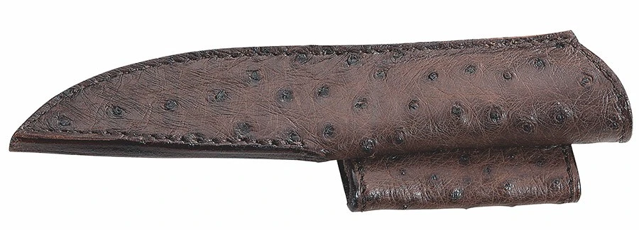 Das Baby Wild von Wildsteer präsentiert ein hochwertiges Gürtelmesser in Damaszenerstahl-Ausführung. Durchgehendes Stück carbonhaltiger Damaszenerstahl, mit 108 Lagen, dient als Basis dieses Messers. Die Rückenstärke der Klinge beträgt beachtliche 4 mm und begeistert mit seiner edlen Damast-Optik. Der Griff ist aus echtem Straußenleder. Die dazu passende Scheide vollendet dieses luxuriöse Messer. Zweifache Befestigungsmöglichkeit der Scheide, das bedeutet das die Scheide horizontal oder vertikal am Gürtel getragen werden kann.
