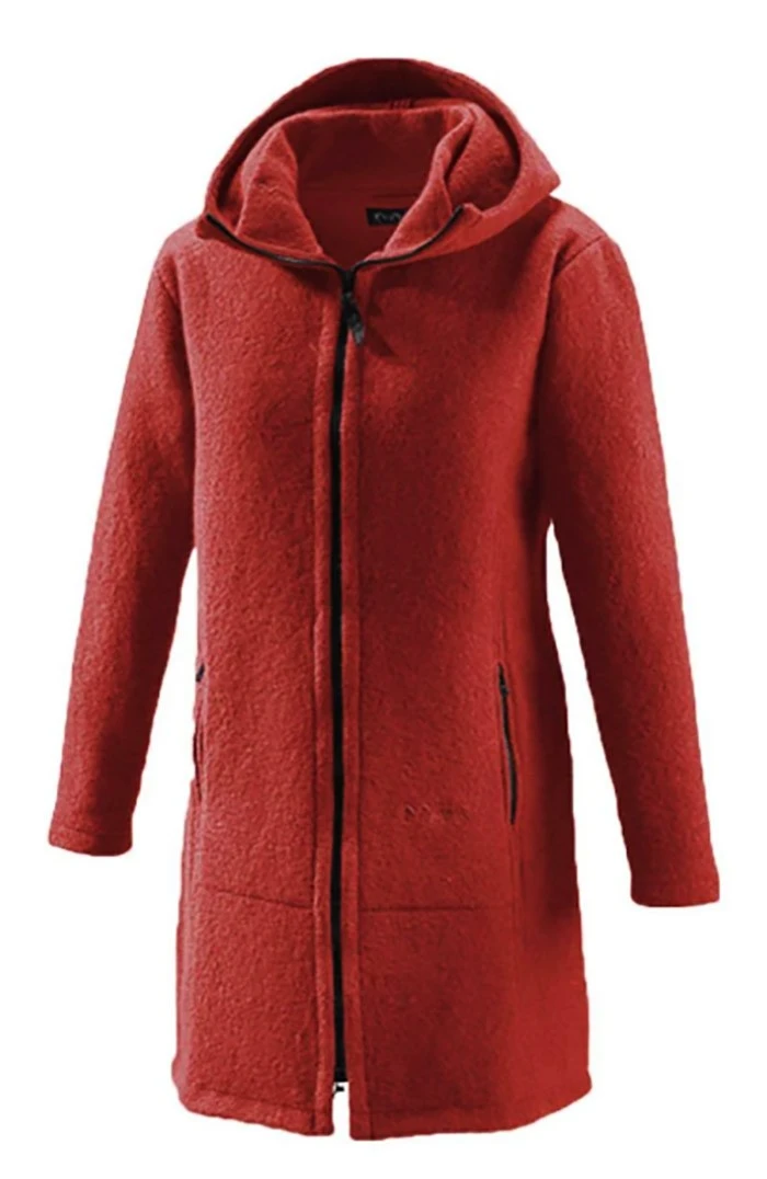 Die Wolljacke hat zwei schöne Handwärmertaschen in denen aber auch deine Handschuhe, Telefon, Taschentücher etc. verschwinden können. Die Napoleon-Einschubtasche an der Brust ist ebenso ein guter Platz für Smartphone, Fotoapparat etc. So hast du beim Winterspaziergang alles parat. Der hohe Kragen ist das I-Tüpfelchen auf der Wärmeleistung der kuscheligen Wolljacke. Bei trockenen Wetter kannst du die Jacke gut als Außenschicht tragen, bei dauerhaftem Schnee oder Regen musst du jedoch etwas wasserfestes drüberziehen.