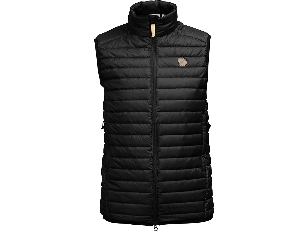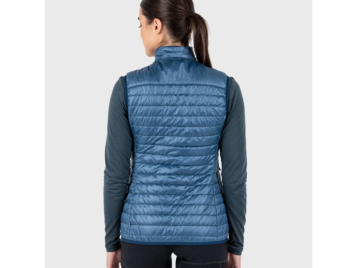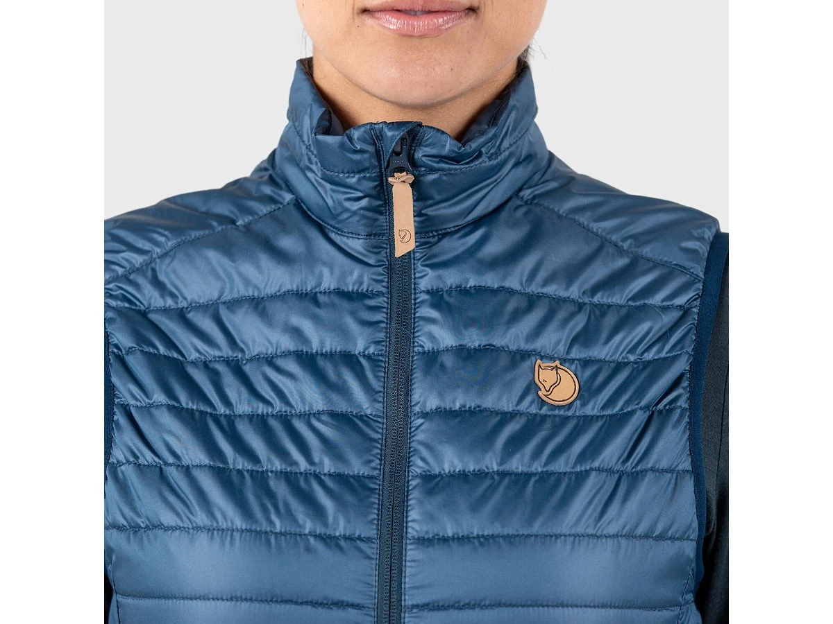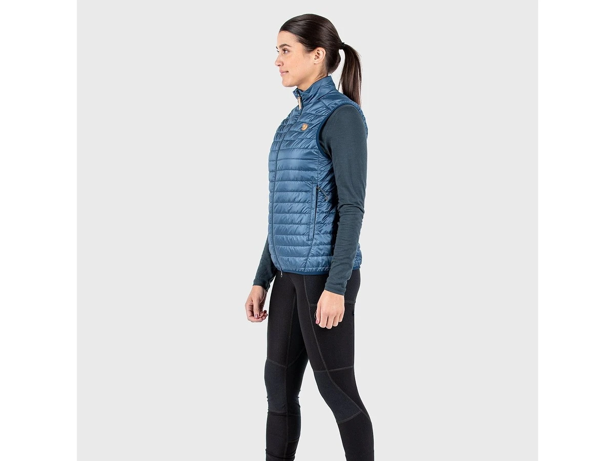 Leichte Weste von FjällRäven für Frauen mit guten Packeigenschaften, die an kalten Sommerabenden oder beim Wandern in großer Höhe für ein Plus an Wärme sorgt. Aus anschmiegsamem Polyestermaterial gefertigt und mit einer leichten Synthetikfüllung aus G-Loft Supreme versehen. Dieses durchdachte Isolationskleidungsstück wärmt den Oberköper, ohne viel Platz im Gepäck einzunehmen. Zwei-Wege-Frontreißverschluss und zwei geräumige Taschen zum Wärmen der Hände. Elastische Einfassung an Ärmelausschnitten und Saum.