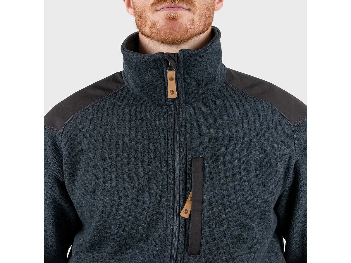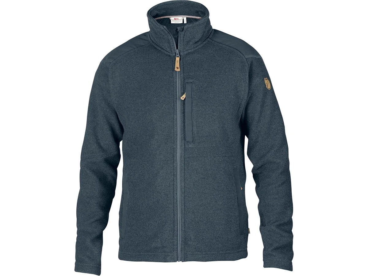 Warme Strick-Fleecejacke für Herren mit bequemer, weiter Passform. Die Buck Fleece ist An den Schultern mit G-1000® Original verstärkt, was sie dort besonders strapazierfähig und robust macht. Dies verhindert z.B. die Durchscheuerung des Materials, wenn man einen schweren Rucksack trägt. Der Frontreißverschluss ist durchgehend zum Stehkragen und mit Kinnschutz. An der Frontseite befinden sich zwei Eingrifftaschen mit Reißverschluss sowie eine Brusttasche.