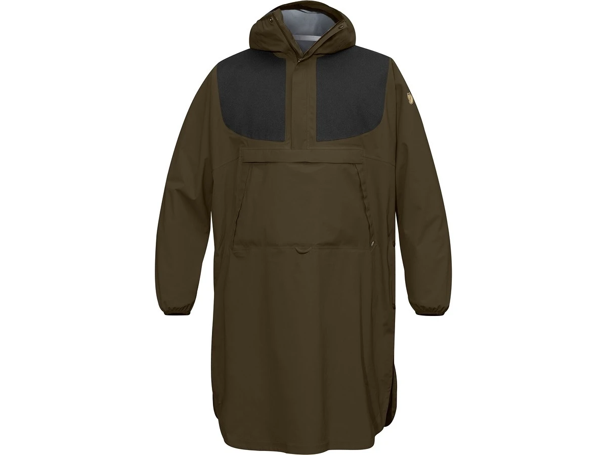 Der Poncho wird als Regenkleidung unterschätzt, dabei bietet er neben exzellentem Wetterschutz auch ausgezeichnete Belüftung und Bewegungsfreiheit. Er wurde mit zahlreichen durchdachten Funktionen ausgestattet, sodass man sich auch in strömendem Regen auf das Wesentliche konzentrieren kann. Dieses preisgekrönte Kleidungsstück wurde für die Jagd entworfen, bewährt sich aber auch für die Vogelbeobachtung, das Fotografieren und andere Aktivitäten, bei denen man sich in der Natur und in Tier Nähe aufhält. Die Ärmel des Ponchos erleichtern die Handhabung der Ausrüstung, während leise schließende Druckknöpfe das An- und Ausziehen erleichtern. Eine Frontlasche schützt dein Fernglas, deine Kamera und andere empfindliche Ausrüstungsteile vor Nässe. Bei Nichtgebrauch verschwindet sie eingerollt in einer geräumigen Kängurutasche. Dank des langen Schnitts sind auch die Beine vor Regen geschützt. Für optimale Bewegungsfreiheit beim Gehen kann der Poncho vorne sogar hochgekrempelt und fixiert werden. Verstellbare Kapuze mit kleinem Schild und eine geräumige Kängurutasche, in der kalte Hände im Handumdrehen wieder warm werden. Bequeme Ärmelabschlüsse mit elastischer Einfassung. Der Poncho ist aus 2,5-lagigem Eco-Shell gefertigt, bei dem das Außenmaterial aus recyceltem Polyester mit Fluorcarbonfreier Imprägnierung besteht. Die Materialkombination ergibt ein geräuscharmes, bequemes Kleidungsstück, das jeder Bewegung folgt und bei Nichtgebrauch platzsparend im Rucksack verstaut werden kann. Verstärkungen aus Polyester (teilweise recycelt) an den Schultern und am Gesäß sorgen für zusätzliche Strapazierfähigkeit beim Tragen eines Rucksacks und beim Sitzen auf steinigem Untergrund.