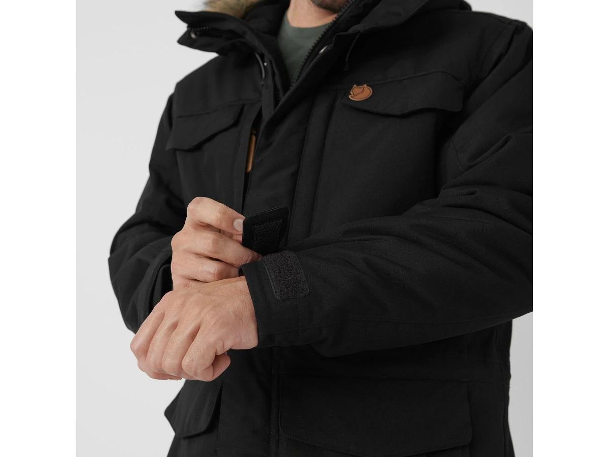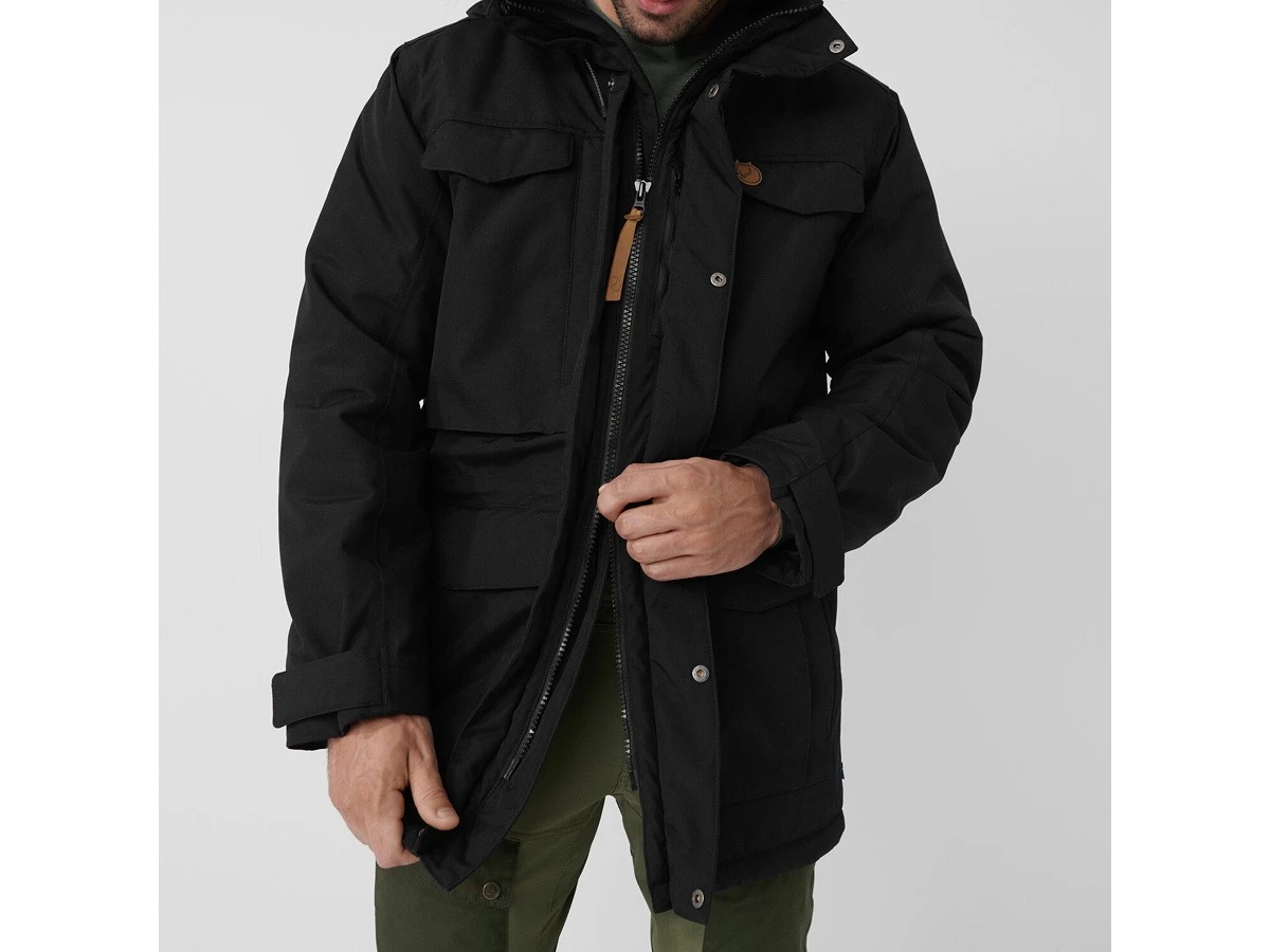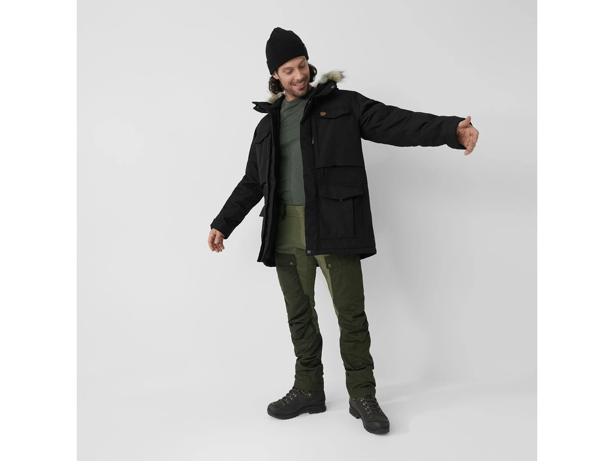 Ein langer, weiter Parka von FJÄLLRÄVEN, der Gesäß und Oberschenkel bedeckt. Die perfekte Wahl für wechselhafte Witterungsbedingungen. Er schützt vor Wind und Regen und hält dank seiner synthetischen Füllung auch bei besonders kalten Temperaturen angenehm warm. Mit Fleece gefütterte Sturmkapuze mit Metalldraht und einem abnehmbarem Kunstpelzrand. Acht Taschen bieten viel Stauraum für deine wichtigen Gegenstände. Tunnelzug am Bund und Zwei-Wege-Reißverschluss mit Schutzleiste. Eine überarbeitete Version des klassischen Parkas von Fjällräven, jetzt mit nachhaltigen Materialien, verbesserten Features und einer optimierten Passform. Damit ist man für den kommenden Herbst und Winter bestens gerüstet.