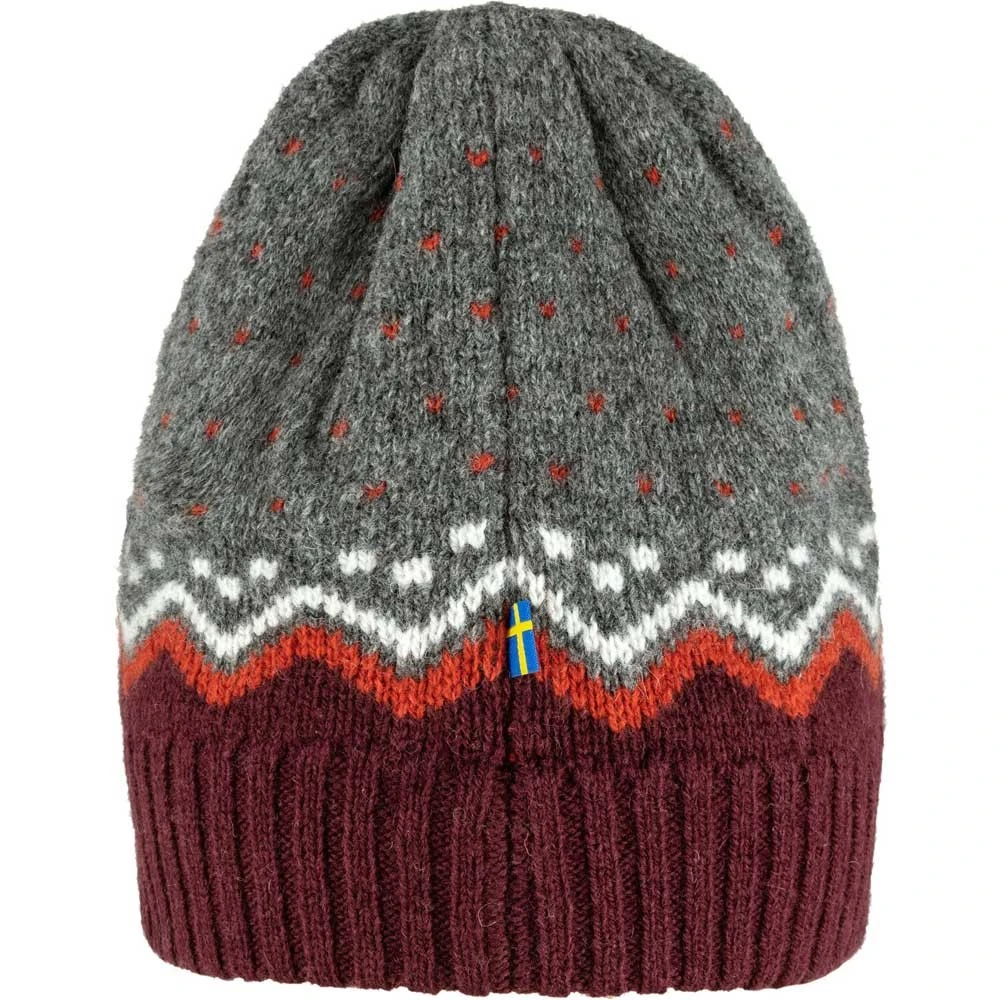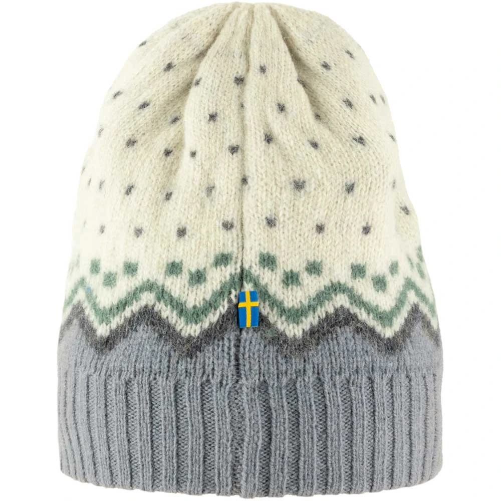 Strickmütze aus weicher, rückverfolgbarer Wolle für das Outdoorleben bei Kälte für Frauen und Männer. Mit skandinavischem Muster, das vom beliebten Övik Knit Sweater von Fjällräven inspiriert ist. Rippenbündchen und umgeschlagenes Leder-Logo an der Seite. Die Wolle wurde ethisch vertretbar gewonnen und ist rückverfolgbar.