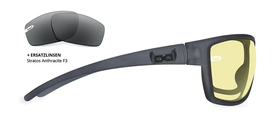 Gläser: NBFX STRATOS anthracite F3 Garantiert kompromisslose Präzision, neutrale Farbwiedergabe und Klarheit im Sehen. STRATOS Gläser erreichen die beste Performance an klaren Sonnenscheintagen. Das blaue Licht wird nicht gefiltert, was sich positiv auf die Leistungsfähigkeit des Körpers auswirkt.