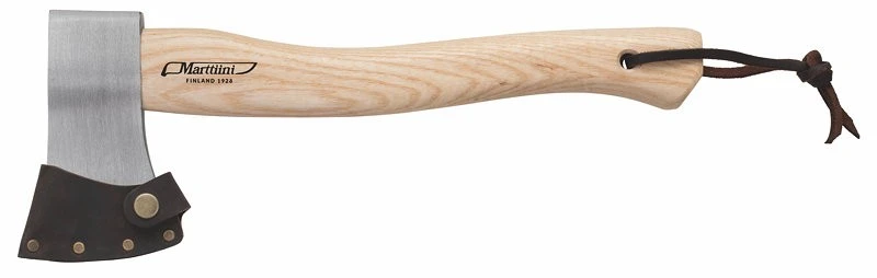 Die Produktion der Marttiini Trekking-Axt folgt der Natur der Messerfertigung. Moderne Technologie trifft auf traditionelle und ausgearbeitete Handarbeit – bei der Produktion wird der gebürstete, 500 Gramm schwere Axtkopf aus hochwertigem Carbonstahl, mit einem Stiel aus schönem Eschenholz kombiniert. Eine Lederscheide schützt die Schneide vor allen Einflüssen und ist im Lieferumfang.