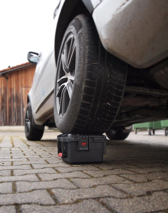 Origin Outdoors extrem robuster Schutzkoffer aus Polypropylen für den Transport von Elektronik, Geräten und anderen empfindlichen Objekten. Sehr schlagfest und zudem wasserdicht nach IP67. Die Maße sind so ausgelegt worden, dass er als Handgepäck mitgeführt werden darf. Da die Handgepäckmaße jedoch variieren, holen Sie sich bitte in jedem Fall die Information Ihrer Fluglinie dazu ein! Ausgestattet ist das Flightcase mit extrem stabilen Scharnieren, leichtgängigen zweistufigen Verschlüssen und einem automatischen Druckausgleichsventil inklusive Dichtungsring. Die Verschlüsse sind hochfeste Spritzgussteile, die auch extremen Stößen standhalten. Neben dem ergonomischen & gummierten Handgriff zum Tragen besitzt dieser Koffer auch einen verstellbaren Teleskopgriff auf der Rückseite. Zusammen mit den beiden leichtgängigen Rollen kann der Koffer so echt bequem hinter sich hergezogen werden. Durch die edelstahlverstärkten Ringösen kann die Box mit einem zusätzlichen Schloss gesichert werden. Der gewürfelte Schaumeinsatz ist im Lieferumfang enthalten und kann selbst nach Belieben individuell angepasst werden.