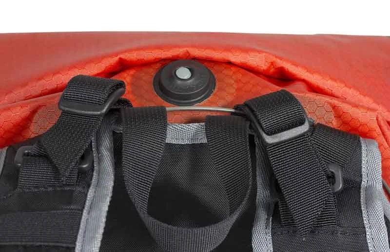 + Trinksystem kann integriert werden (optional), Schlauchdurchlass, Schlauchclip am Träger