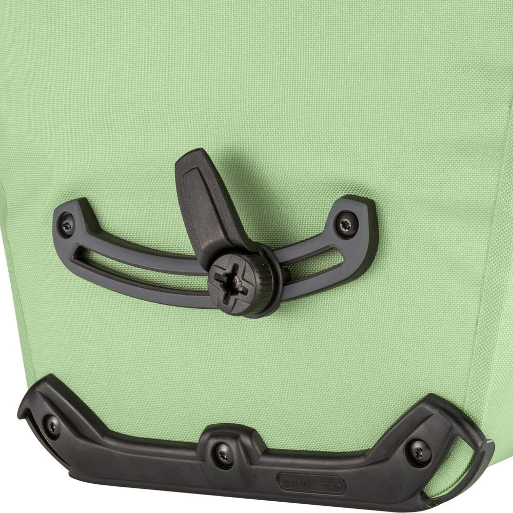 Der Ortlieb Back-Roller Design (Einzeltasche) mit frischen, neuen Motiven: „PS33“ in der Farbe pistachio und „Trees“ in der Farbe white-black. Mit selbstschließenden Haken des Quick-Lock2.1 Systems lassen sich die Taschen schnell und einfach an fast allen Gepäckträgern einhängen.