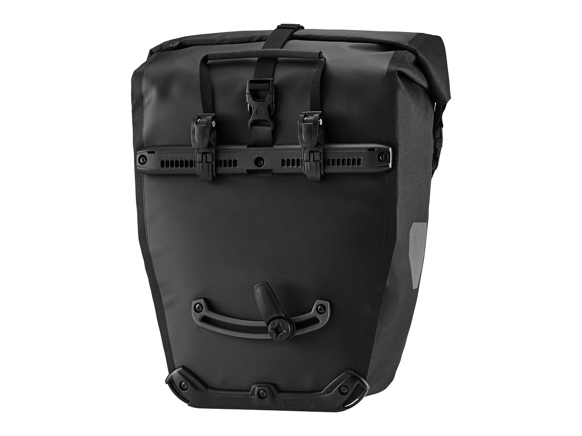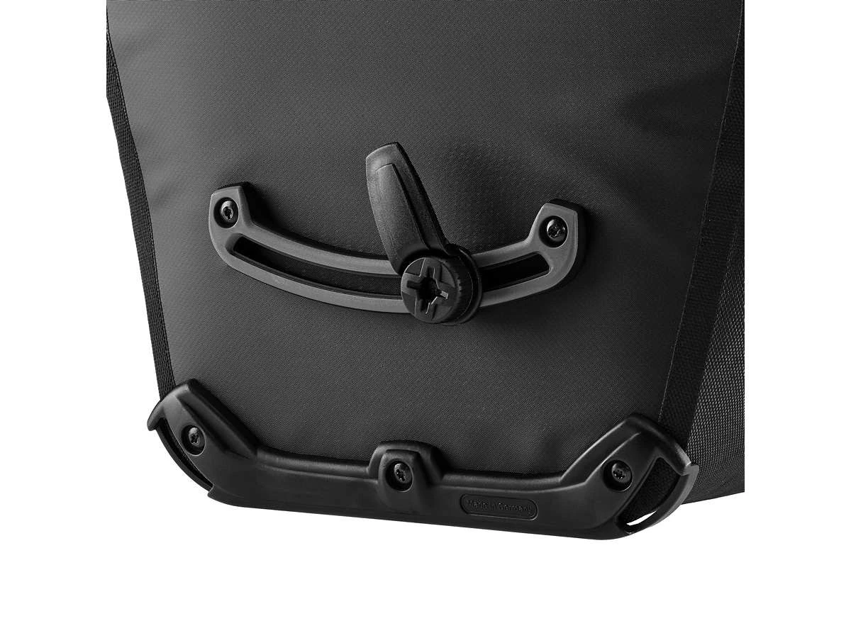 Eleganter und reduzierter Look – der Back-Roller Design! Die geräumige Packtasche für den hinteren Gepäckträger gibt es im schwarzen Look und in speziellem Design. Cool und Straight – die Funktionen des ORTLIEB-Klassikers wurden natürlich beibehalten. Dank dem praktischen Quick-Lock2.1 Halterungssystem mit selbstschließenden Haken lässt sich die Tasche einfach und schnell an fast allen Gepäckträgern einhängen. Das System ist ohne Werkzeug verstellbar, die 16mm Haken können mit beiliegenden Einsätzen verkleinert werden (8, 10 und 12mm). Die untere Hakenschiene dient zur zusätzlichen Fixierung und verfügt über weichere Auflageflächen, was besonders schonend für den Gepäckträger ist. Dank drehbarem Quick-Lock2.1-Arretierungshaken ist dieses System an praktisch jeden Gepäckträger anpassbar. Eine fest montierte Innentasche, bestehend aus Hauptfach und Netztasche mit Reißverschluss sorgt für optimale Ordnung und Übersicht. Mit dem Schultergurt lässt sich der Back-Roller Design auch bequem als Umhängetasche tragen.