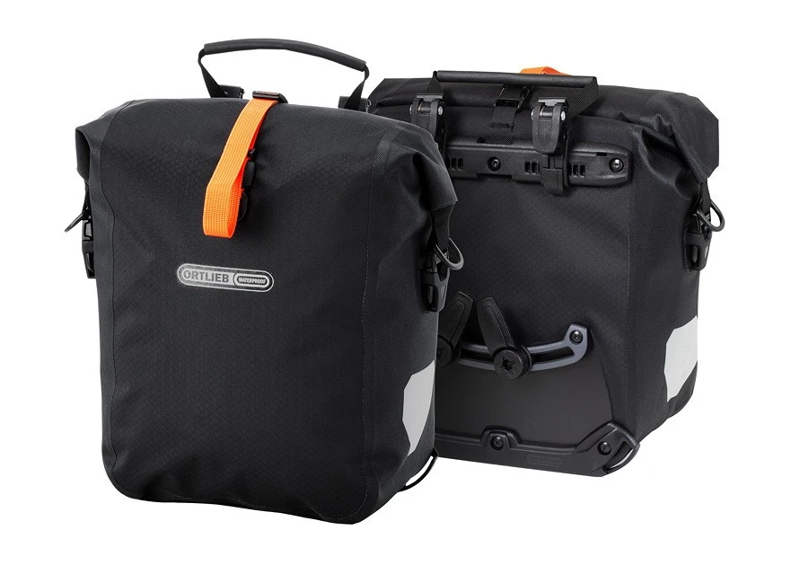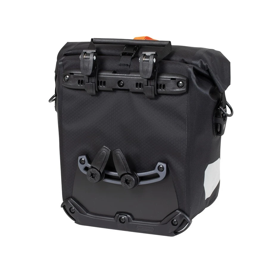 Perfekt für mehrtägige Touren oder ein Self-Supported Race. Das ORTLIEB Gravel-Pack (Paar) bietet dir 25 Liter Stauraum für zusätzliches Equipment wie Proviant, Kochgeschirr oder luxuriöse „Extras“. Durch die Anbringung am Lowrider-Gepäckträger hast du selbst mit viel Gepäck einen tiefen Schwerpunkt und unveränderte Agilität im Gelände. Das leichte, abriebfeste Material hält selbst den härtesten Bedingungen von Stein- und Schotterpisten aus. Auch heftige Witterungen können deinem Gepäck nichts anhaben, schließlich sind die wasserdichten Taschen mit dem bewährten Rollverschluss von Ortlieb ausgestattet. Dank Quick-Lock2.1-System und zweifachen Arretierungshaken ist das Gravel Pack sicher und wackelfrei am Gepäckträger fixiert.