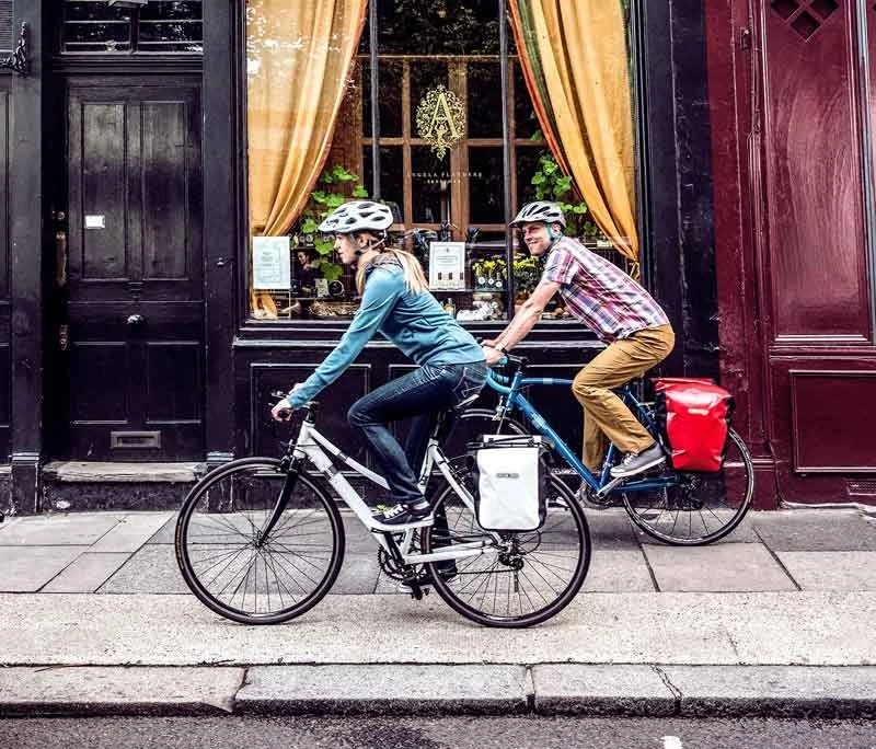 Die symmetrische, beidseitig angeschrägte Form sorgt für die nötige Beinfreiheit bei diesem ORTLIEB-Klassiker. Die Einzeltaschen können links oder rechts am Fahrrad befestigt werden
