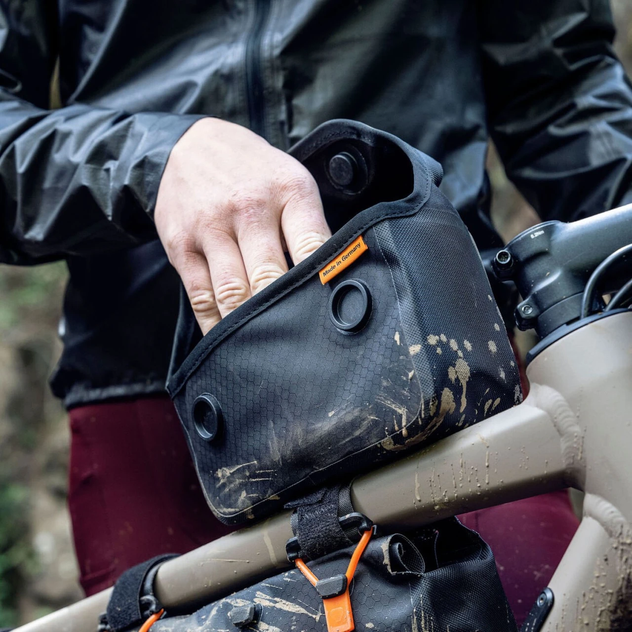 - Kompakte, wasserdichte Oberrohrtasche mit Magnetdeckelverschluss für Schnellzugriff