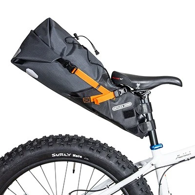 Mit zwei extra starken Klettverschlüssen wird das geräumige, wasserdichte ORTLIEB Seat-Pack wird einfach an das Sattelgestell montiert und fungiert so auch gleichzeitig als Schutzblech im Gelände.