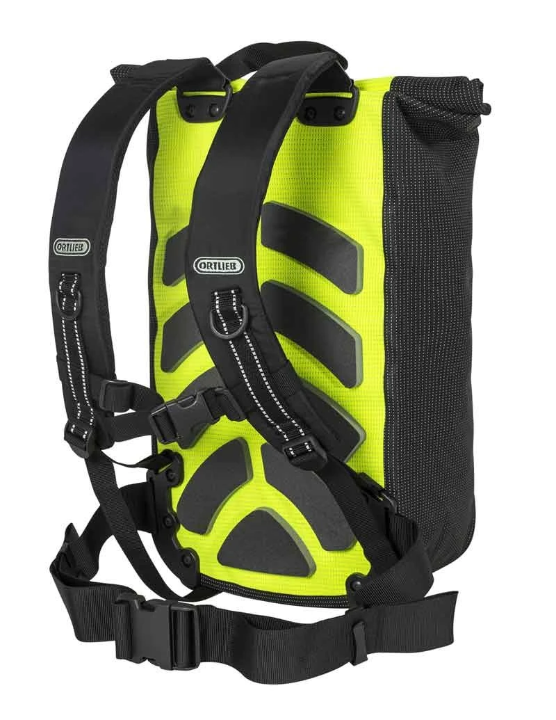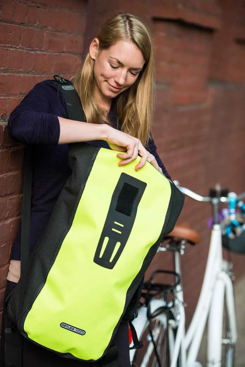 Der handliche Tagesrucksack im Messenger-Stil Ortlieb VELOCITY HIGH VISIBILITY hat mit 24 Litern Stauraum Volumen die perfekte Größe als Alltags Rucksack für Uni, Schule oder Arbeit.