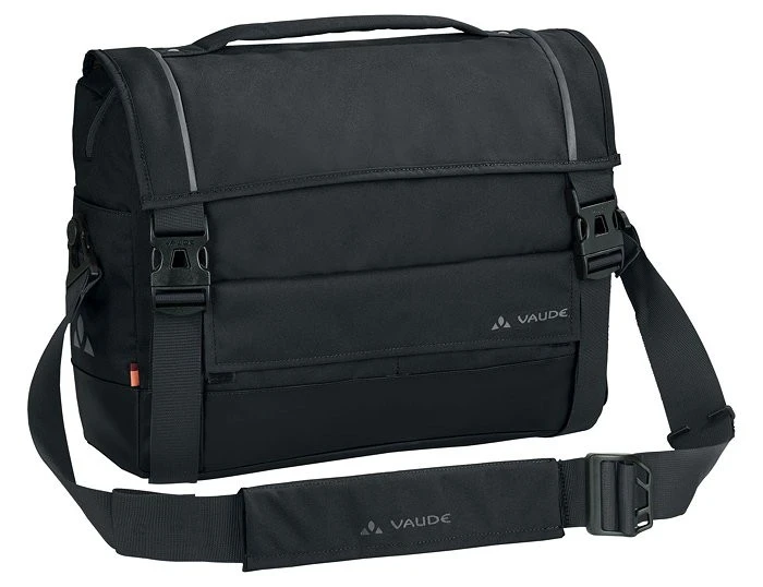 Urban auf dem Rad unterwegs – Das Cyclist Briefcase ist DIE Aktentasche in urbanem Design, mit einer Befestigungsschiene fürs Fahrrad ausgestattet und zudem aus robustem Hauptmaterial in textiler Optik hergestellt, was natürlich nach dem strengen bluesign®-Umweltstandard zertifiziert ist. Der untere Teil aus Planenmaterial ist sehr strapazierfähig und unempfindlich gegenüber Schmutz und harten Untergründen. Dein Laptop (max. 15.6 Zoll) verstaust Du gut geschützt im gepolsterten Fach neben sonstigen Unterlagen und Zubehör, die im Hauptfach und den zahlreichen Organizer-Fächern Platz finden. Über eine abnehm- und verstellbare Befestigungsschiene wird die Hinterradtasche am Gepäckträger montiert. Die Plug and Ride-Schiene kannst Du, für ein bequemes Tragen über der Schulter, im seitlichen Einsteckfach verstauen. Mit dezenten Reflex-Prints, Tragegriff, Regenhülle und abnehmbarem Schulterträger. Das VAUDE Green Shape-Label steht für ein funktionelles Produkt aus den besten nachhaltigen und umweltfreundlichsten Materialien.
