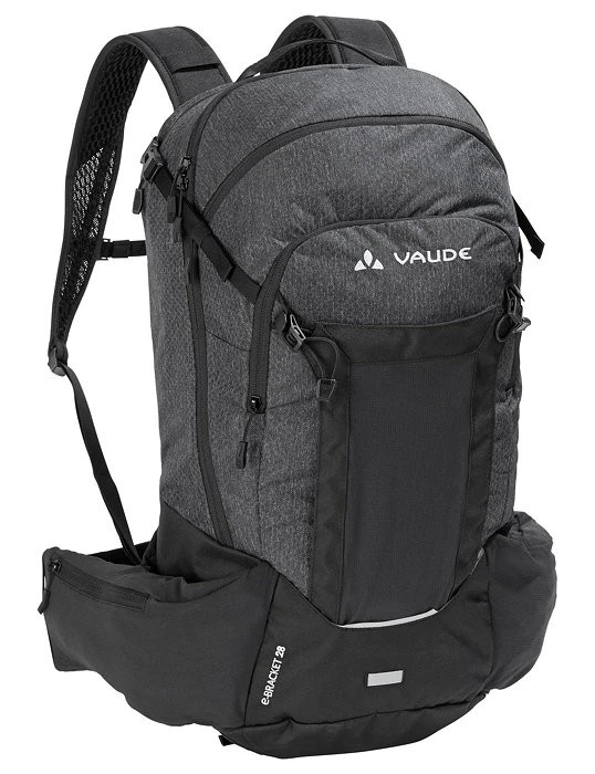 Der eBracket 28 von VAUDE ist ein All Mountain-Rucksack, der extra für eBiker konzipiert wurde. Er ist mit allen Raffinessen ausgestattet, die Energie-Biker auf Ihrer Abenteuer-Tour brauchen. Mit Platz für einen Zusatz-Akku. Im angenehmen Hüftgurt, der gleichzeitig komprimierende Wirkung hat, befinden sich Fächer für abnehmbare Displays und Schlüssel. Bei der weiteren Ausstattung knüpft der eBracket 28 an die bewährte Bracket-Serie an: Blinklichthalterung, Helmhalterung, Regenhülle und ein gefüttertes Brillenfach mit Zip-Pocket sind selbstsprechend ebenfalls mit an Bord. Durch die kluge und raffinierte Fachaufteilung befinden sich Akku und andere schwere Gegenstände stets nahe am Rücken – dies bedeutet: einen höheren Tragekomfort auf technischen Streckenabschnitten und eine optimale Gewichtsverteilung auch bei schwierigem Gelände. Praktisch ist auch der Werkzeug-Organizer im Frontfach, der unterwegs für mehr Ordnung sorgt und bei einer Panne dafür sorgt, dass das Werkzeug schnell zur Hand ist. Er wird nach Green Shape 2.0 umweltfreundlich hergestellt. Die ebenfalls umweltfreundliche und PFC-freie Eco Finish-Behandlung, lässt kleinere Regengüsse und Nässe ganz einfach abperlen. Damit ist der eBracket 28 der ideale Rucksack für eBiker, die nachhaltig und bestens ausgestattet unterwegs sein möchten.