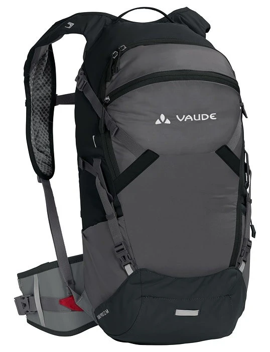 Technisch anspruchsvolle Biker und Radfahrer haben mit dem leichten Protektor-Rucksack ein echtes Talent zur Hand. Das ergonomisch geformte Körperkontakt-Rückensystem mit integriertem Mehrschlagprotektor legt sich zum Schutz der Wirbelsäule eng am Rücken an. Er kann außerdem über einen höhenverstellbaren Hüftgurt optimal an die Körpergröße angepasst werden. Der breite Hüftgürtel und die Schulterriemen aus flexiblem und luftdurchlässigem Material unterstützen die perfekte Passform und den festen Sitz im holprigen Gelände. Für Ordnung und Übersicht sorgen die Organizerfächer im Haupt- und Frontfach sowie seitliche Mesh-Taschen. Bei Bedarf kann man das unterteilte Werkzeugfach am Boden auch abnehmen. Inklusive Helmhalterung, Trinkystem-Ausgang und einer Regenhülle. Auch mit längerem Rückensystem in L erhältlich. Das VAUDE Green Shape-Label steht für ein funktionelles und vor allem umweltfreundliches Produkt aus nachhaltigen Materialien. Das GS-Zeichen steht für „Geprüfte Sicherheit“ nach CE-Norm EN 1621-2 durch den TÜV SÜD.