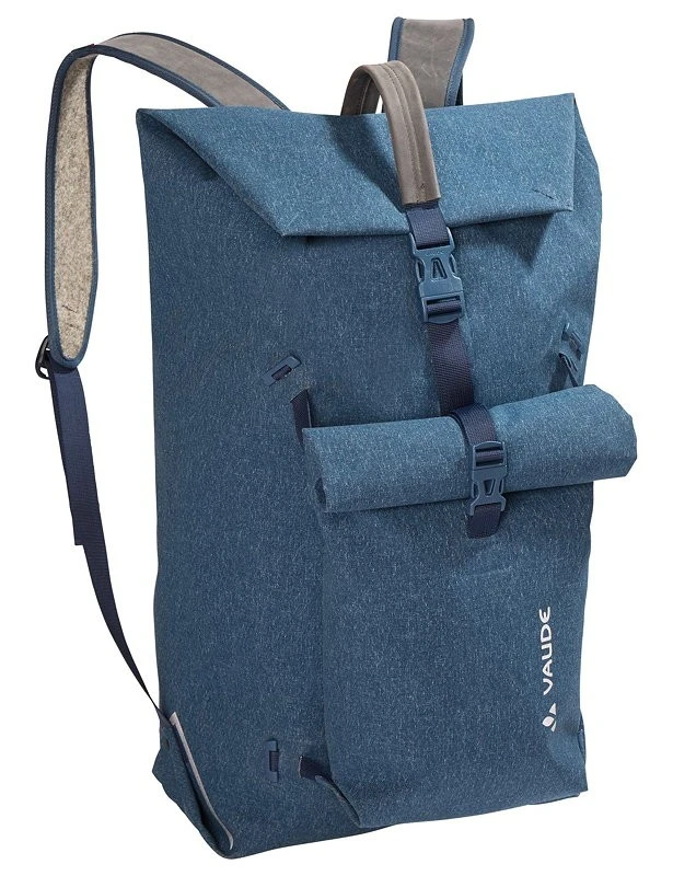 Der Wolfegg – Klassischer Look aus modernsten und nachhaltigen Materialien. Ein Rucksack mit 24 l Volumen in sorgfältiger Verarbeitung. Die ergonomisch geformten Schulterträger wurden aus einer Kombination aus Q-Milk – einem Filz aus Milchfasern – und nachhaltigem terracare® Leder erstellt. Der Packsack selbst besteht aus einem schmutzabweisenden, robusten und wasserdichten Material in stylischer und textiler Optik, er hat dekoraktive reflektierende Aufdrucke und einen Deckelgriff. An den raffinierten Ausstanzungen auf der Vorderseite kannst Du Zusätzliches befestigen – wie z. B. Blinkies, kleine Karabiner oder die eigens dafür entwickelte Schultertasche namens „Egg“, die optional von VAUDE angeboten wird. Im großen Hauptfach befindet sich ein herausnehmbarer und wattierter Organizer, in dem Stifte, Tablet und weitere Unterlagen übersichtlich und sicher geschützt verwahrt und transportiert werden können. Das Laptop (bis 15.6 Zoll) findet im separaten Laptopfach seinen Platz und auch der Schlüssel ist durch den leicht erreichbaren Schlüsselhalter immer sofort griffbereit. Geldbeutel und Handy sind im seitlichen Reißverschlussfach schnell wiedergefunden. Das VAUDE Green Shape-Label steht für ein funktionelles und vor allem umweltfreundliches Produkt aus sehr nachhaltigen Materialien.