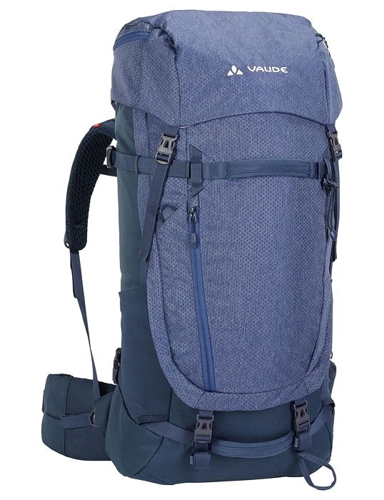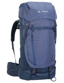 Der Women`s Astrum EVO 55+10L von VAUDE ist ein zuverlässiger Trekkingrucksack, der bei Mehrtagestouren und größeren Reisen mit viel Gepäck, mit viel Stauraum und einem hervorragenden Tragekomfort überzeugt. Das Tergolight-Rückensystem mit integriertem Rahmen steht für seine sehr gute Lastübertragung und viel Stabilität. Das komplette Tragesystem ist bequem, einfach und stufenlos verstellbar. Wichtig für eine komfortable Lastenübertragung und einen stabilen Sitz sind auch seine bequem gepolsterten Hüftflossen. An insgesamt drei gepolsterten Griffen kann der Trekkingrucksack beim Transport sowohl stehend als auch liegend angehoben werden. Durch seine große Frontöffnung, die auf einer Seite komplett bis oben geht, kann der Rucksack fast wie ein Koffer geöffnet werden und ist genauso leicht zu befüllen. Das große Innenfach wird durch einen herausnehmbaren Trennboden unterteilt. Im geöffneten Zustand (und oben befestigt) kann diese Trennung auch zu einem Fach für das Trinksystem umgebaut werden. In einer großen Fronttasche kannst du Karte, Reiseführer oder Regenjacke aufbewahren und sind so immer schnell erreichbar. Die Trekkingstöcke und Isomatte lassen sich wie von VAUDE gewohnt außen fixieren. Ein weiteres Highlight ist, das die Deckel der Astrum EVO-Serie zur Umhängetasche für kurze Ausflüge oder als Bordgepäck bei Busreisen umgewandelt werden können. Zur Gewinnung von mehr Nachhaltigkeit wurde eines der beiden Hauptmaterialien des Astrum EVO mit 50% recyceltem Polyester hergestellt. Dieses Produkt ist mit Eco Finish umweltfreundlich und wasserabweisend ohne Fluorcarbone (PFC) hergestellt. Das VAUDE Green Shape-Label steht für ein funktionelles aber auch umweltfreundliches Produkt aus besten nachhaltigen Materialien.